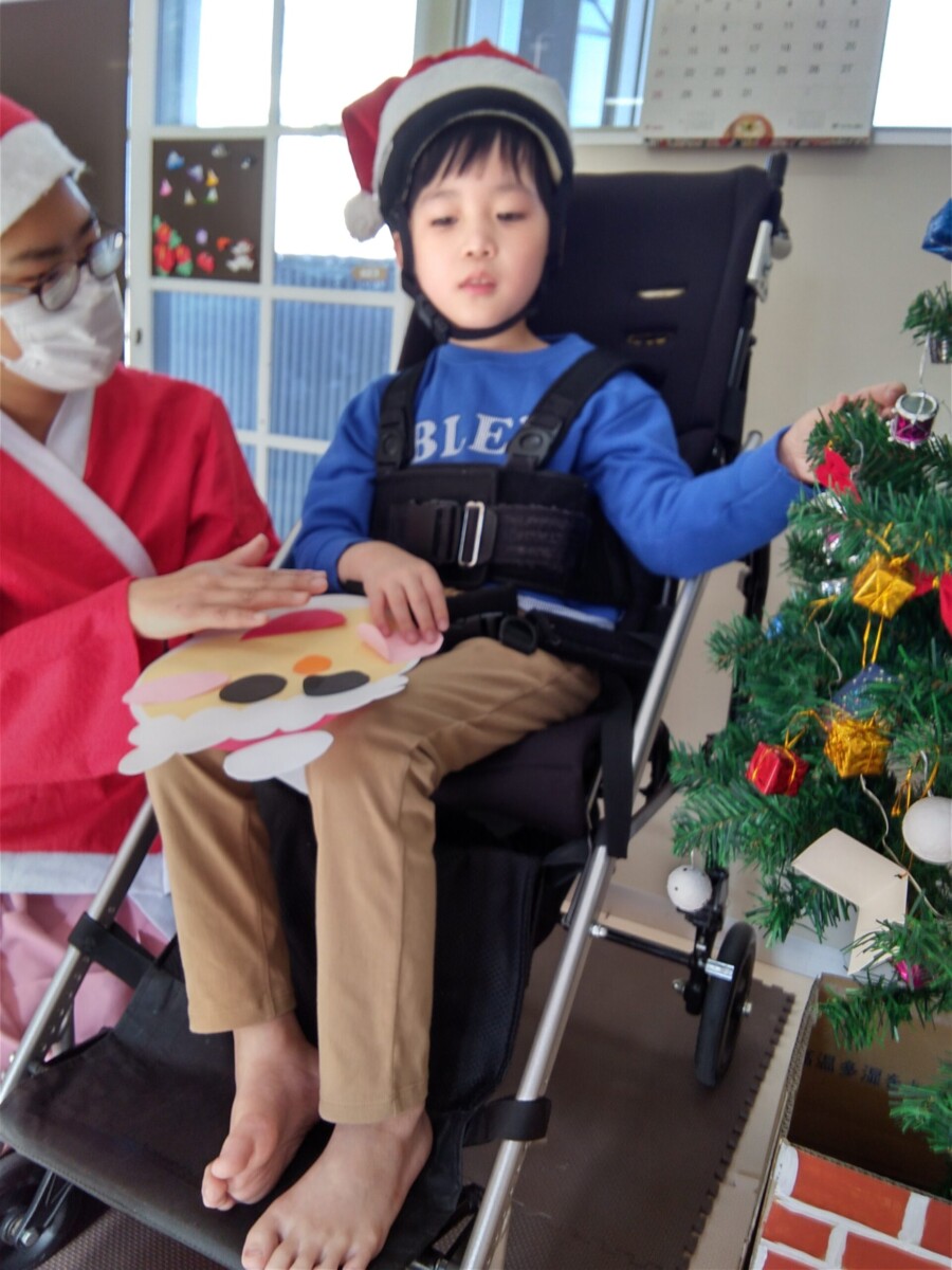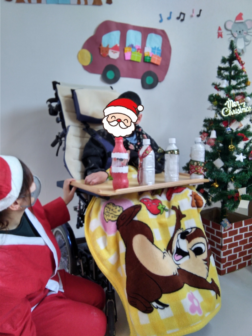 サンタさんと一緒にサンタ福笑い・ペットボトル倒し(サンタさん・雪だるまさん)をやりました(#^.^#)