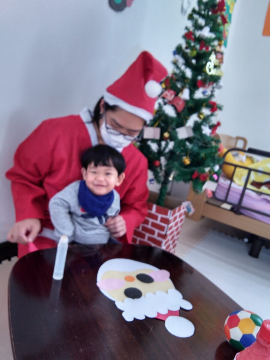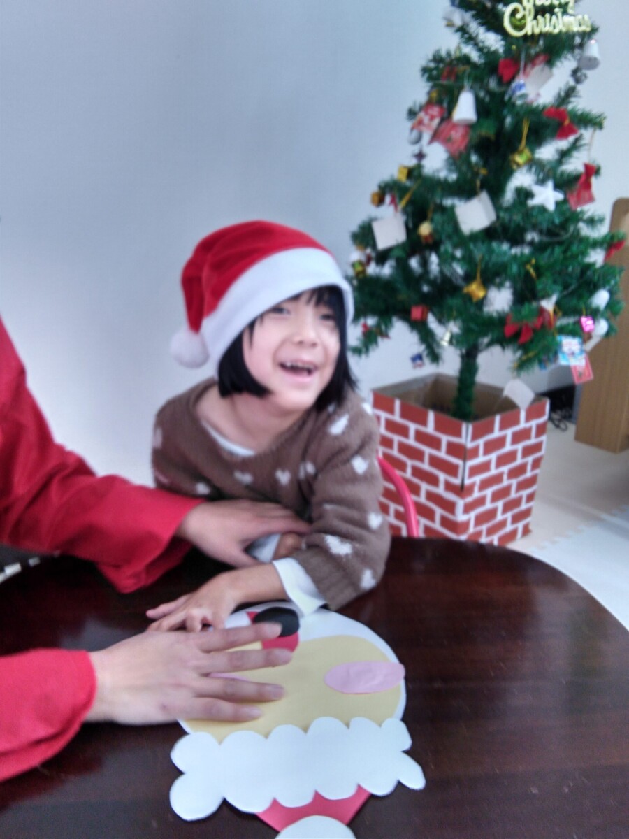 出来上がったサンタさんを嬉しそうに「できたー!!」と言っているように